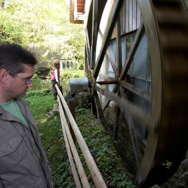 Mehrere Mühlen waren früher auf dem Gebiet der Gemeinde Mühleberg in Betrieb (und gaben ihr wohl auch den Namen). Heute ist einzig noch die Flühlenmühle erhalten. Das Gebäude steht verträumt im romantischen Flüehbachgraben und das Wasserrad dreht sich wie in alten Zeiten. Ein Verein hat es sich zur Aufgabe gemacht, das Gebäude mit den Mahleinrichtungen zu erhalten.