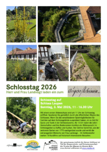 Mit einem ersten Blidenschuss wird um 11 Uhr der Schlosstag eröffnet. Spazieren Sie gemütlich durch alle öffentlichen Räume des Schlosses. Wenn Sie die verschiedenen Spielmöglichkeiten für Familien auf dem Schlossgelände ausprobiert haben, ist es Zeit für Speis und Trank in der Schlosstaverne. Ab 13 Uhr laden die edlen Herrschaften und ihre Bediensteten inmitten der Blütenpracht im Schlossgarten zu Kaffee und Kuchen. Der Gärtner berichtet, wie der verlorene Garten von 1775 wachgeküsst wurde und verrät die extravaganten Wünsche von Frau Landvogt. Im Schlosskeller warten 10 Kurzfilme auf historisch interessierte Besucher.
