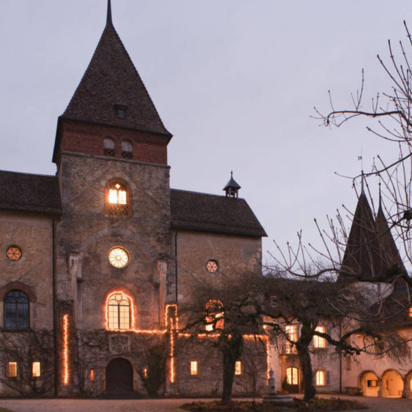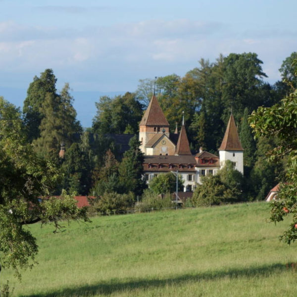 Im Mittelalter befand sich an dieser Stelle ein Kloster. Der Legende nach erfand hier ein Mönch namens Vaccarinus nicht nur den Vacherin-Käse, sondern auch das Fondue – mit dem er die Fastenvorschriften umgehen konnte. Nach der Reformation wurde das Kloster abgebrochen; an seiner Stelle entstand ein malerisches Kastell. Seit 1943 ist die Anlage im Besitz des Kantons Bern. Nach einer aufwendigen Renovation in den Jahren 1985 bis 1990 steht sie heute der Öffentlichkeit zur Verfügung. Die Räume eignen sich nicht nur für Schulungen, sondern sind auch für Bankette und Hochzeiten sehr beliebt. Zur Anlage gehören nicht nur das eigentliche Schloss und ein wunderschöner Park, sondern auch ein Chorgeviert aus dem 11. Jahrhundert, das heute wieder als Kirche genutzt wird.